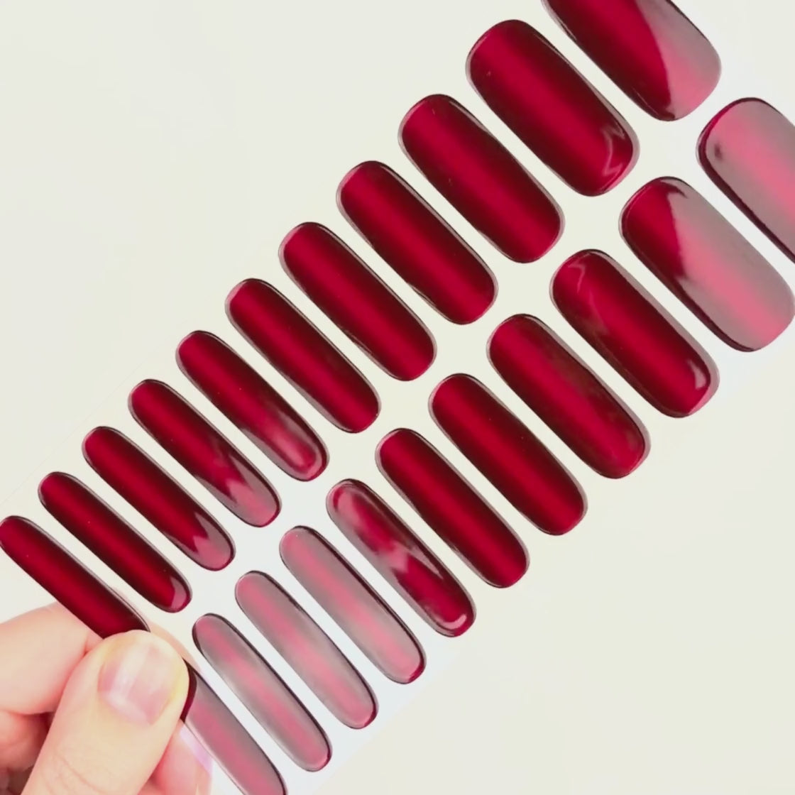 „Ruby CatEye“ ist Bestandteil unserer UV Gel Kollektion. Diese beeindruckende Kreation besticht durch ein luxuriöses, rubinrotes CatEye-Finish. Dieses elegante Design sieht auf jedem Hautton umwerfend aus und kann zu nahezu jedem Anlass getragen werden – eine stilvolle Art, deine Maniküre aufzuwerten.